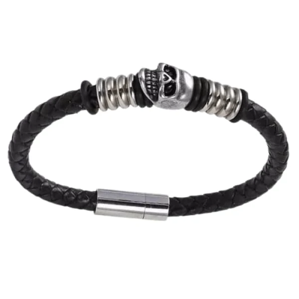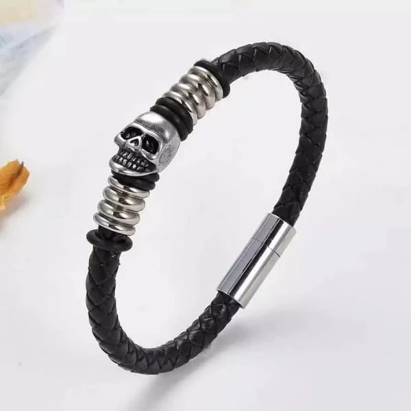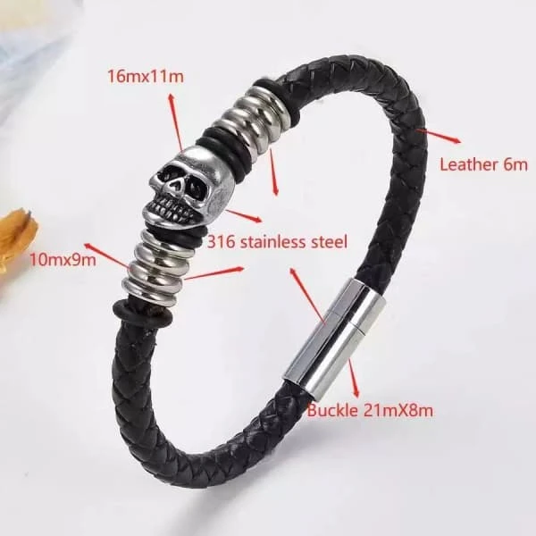 The Leather skull bracelet is all you need to have in your wardrobe. The skull design of this fashion-forward cuff bracelet is a provocative reminder that you’re a shining light in the darkness. The biker skull had long before becoming a symbol of power and still continues to be associated with the tough and independent.