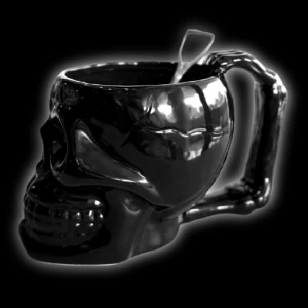 3D Creative Black Skull Mug Ceramics Coffee Mug Big Drink Water Cup Men’s Halloween Gift 420ml.