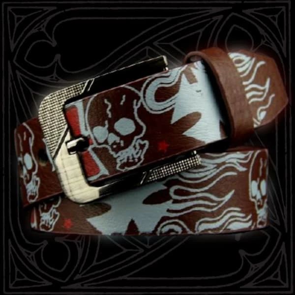 Looking for a new belt to match your new brown shoes? This Brown Skull Belt is a perfect choice. It is made of durable cowhide leather and will last you for years. This belt is available in one size. The belt is designed with a lot of skulls all over the belt. This belt is perfect for any guy looking for a brown belt.Â