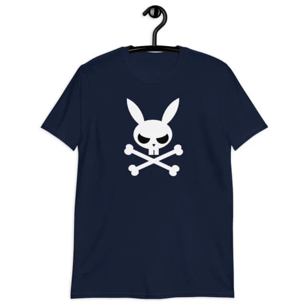 The skull is a symbol of death and violence. A perfect representation of the anger in this world. In this case, the skull is in the shape of a bunny and has crossbones below it. The bunny is all in black. Get this Angry bunny Skull Print T-shirt today and be the highlight of the weekend.Â