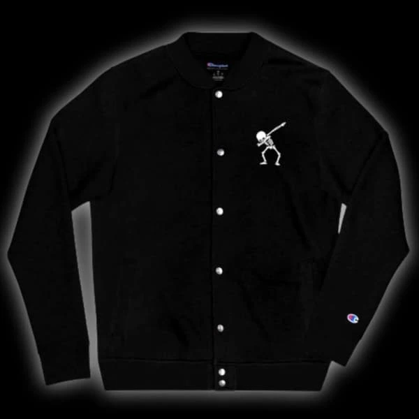 Give your streetwear look an update with this embroidered Skeleton practicing a DAB on a Champion & Crewskull bomber jacket. The detailed embroidery adds a unique twist to the classic bomber jacket, resulting in a truly distinct fashion item that’ll become a favorite in your wardrobe. It tends to be worn periodically like at parties, trekking, or at any melodic fest. It will look appealing on your body. Wear this DAB (Skull Jacket Feat Champion©) and rock the moment.