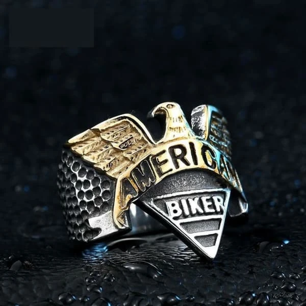 The word American Bikers is also scripted. The eagle structure is in gold while the letters are in silver material formats. The Gold and silver touch looks attractive in every possible way. This Tempting American Ring is Worth the experience to buy it soon.