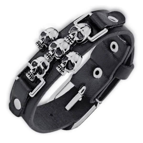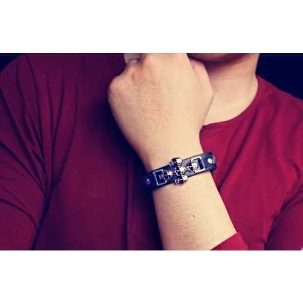 The Skull Bracelet is a classic and stylish leather bracelet that is made to look just like a real skull in the style and comfort of a motorcycle band. The Skull Bracelet is made with real leather and can be used while going out on the bike. Wear this Fabolous Skull Cross Leather Bracelet and rock.Â