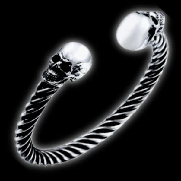 This Frenetic multi-purpose bangle is a great addition to your collection of bangles. Made from 100% stainless steel, the skull sports 2 silver skulls on the ends. The adjustable clasp makes it easy to add or remove the bangle, while the polished and silver skull is crafted to look like it just comes right off the skull.