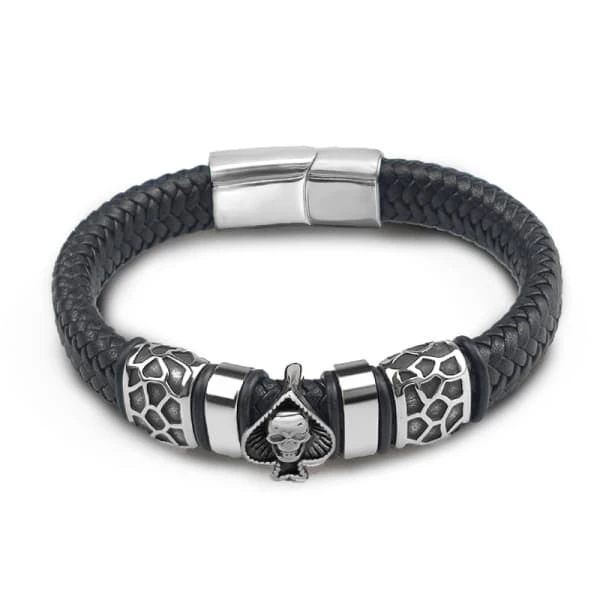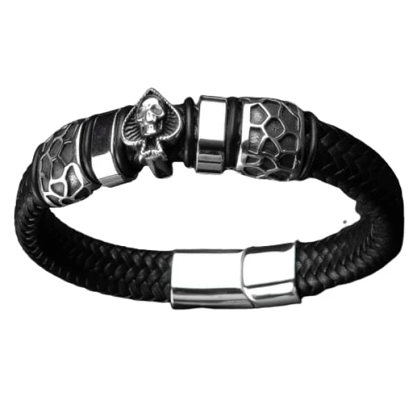 Grim-Reaper Skull Leather Bracelet