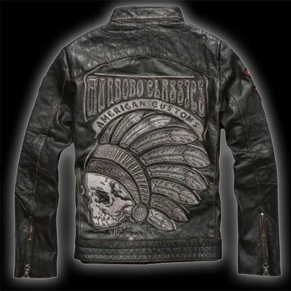 Bring this Massive Indian Skull Jacket to your home. Add this classic but stylish-looking jacket to you wardrobe and charm it. This jacket has indian tribe design on the back and attractive red badge design at upper right. Bring it home today.Â