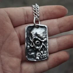 Broken Skull Necklace “Destroy” – Resin Pendant, Steel Chain(Broken Skull Necklace Destroy)