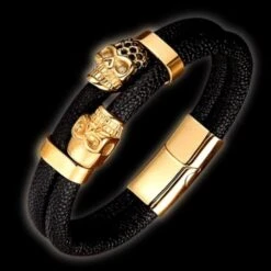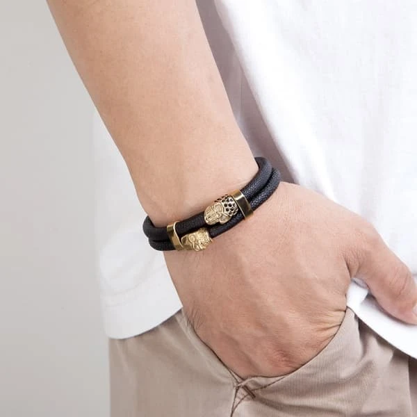 This Men’s Leather Skull Bracelet is fantastically good. The golden variant makes it more charming and magnificent. These skull cuff bracelets are loved by all. Some have even said it’s the only thing they’ve gotten on their wrist all year. The blinding design allows you to stand out while also looking majestic. Get yours after you make your statement.
