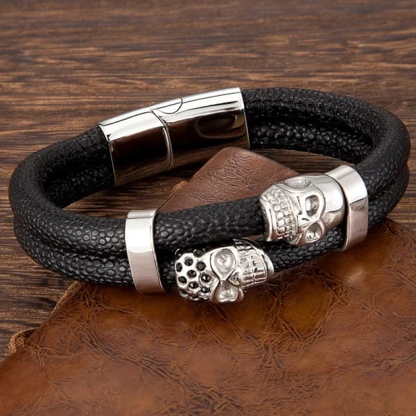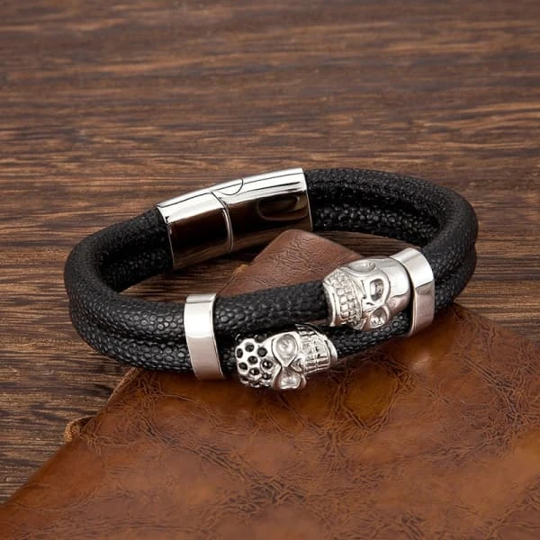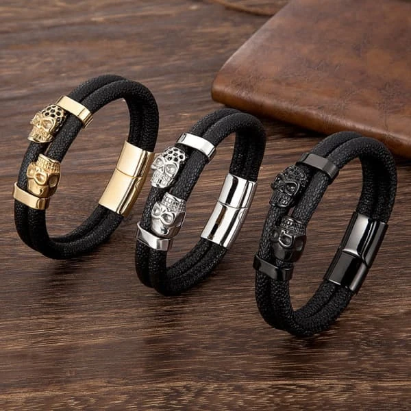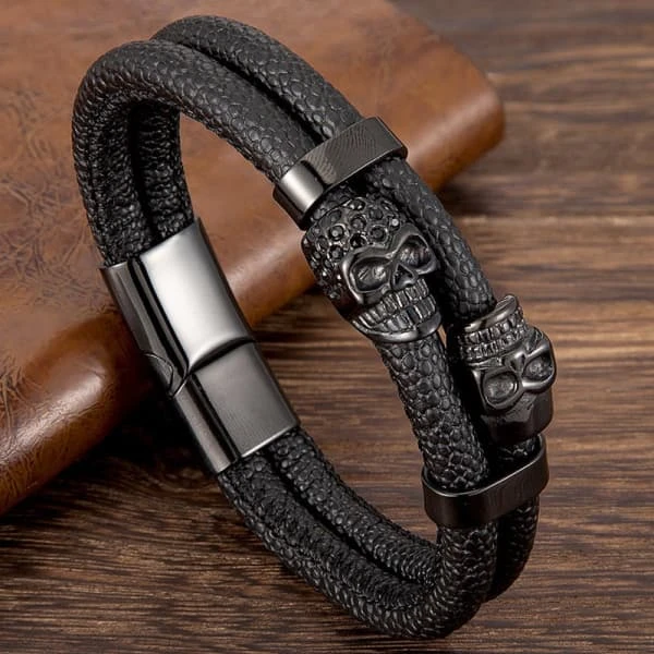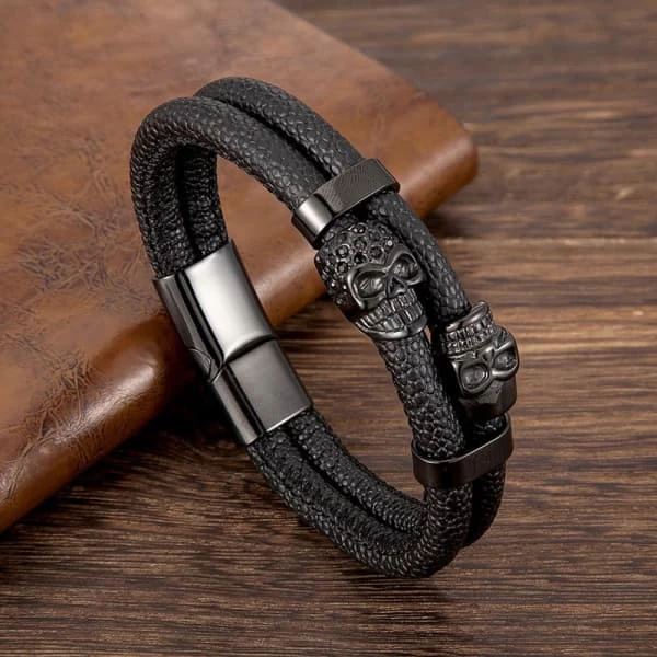Men’s Leather Skull Bracelet