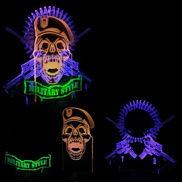 Military Skull Lamp designed as Beret Skull shape. Built-in 3 multiple modes (All-Lighting Mode, Special Effects Mode, and Breathing Mode). 3 pieces of Light-guide-Plate to present 3D line lamp effects. Touch the logo to turn On/Off the lamp. It is another funny stuff in your home/office. We have confidence that you won’t observe one more beret skull lamp that comes loaded with such a lot of value and solace at such a superb cost! So get your lamp today and partake in the most superior arrangements.