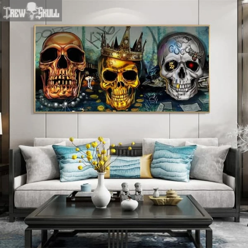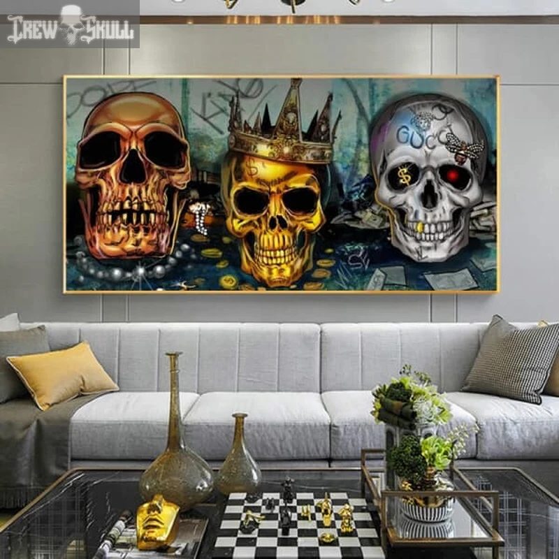 Make your space stand out with the stunning Monarchy Canvas Poster. Featuring a bold golden skull, this artwork brings a touch of elegance and power to any room. Perfect for your home, bar, restaurant, or hotel, this rectangular print uses waterproof ink and spray painting techniques for long-lasting, vibrant colors.