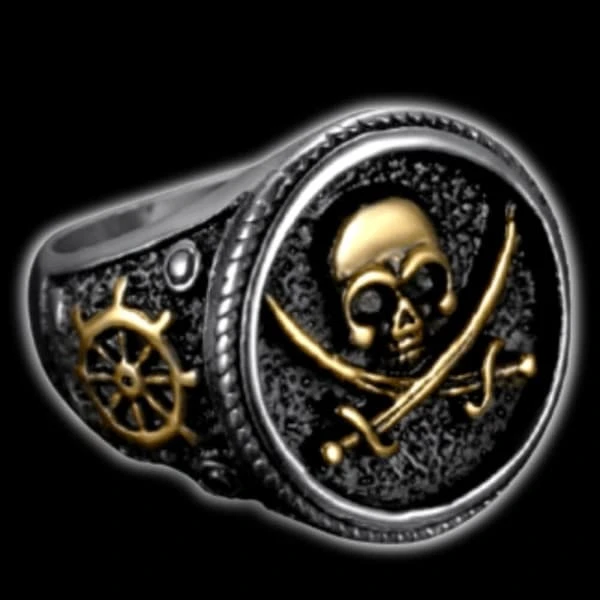 Our Stainless Steel Pirate Ring is crafted for those who seek style with substance, this ring combines durability with a touch of luxury. Its dual-tone silver and gold design adds a dash of sophistication, perfect to elevate your look effortlessly.