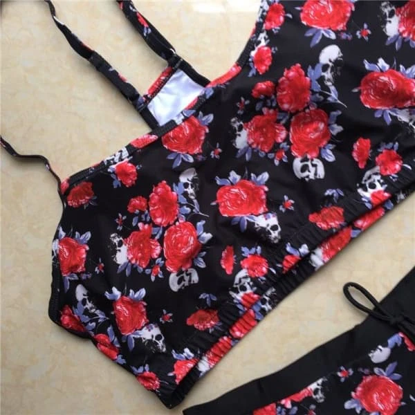 Indulge yourself with this High Waist Skull swimwear with flowers.