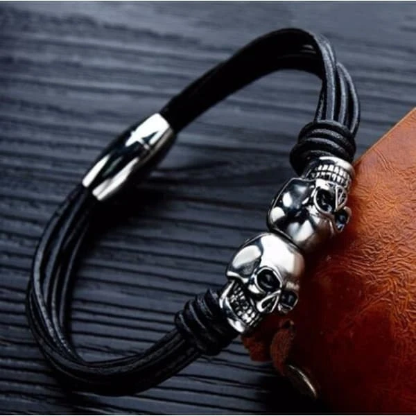Unique multiple Rebelry leather layers bracelet. This black bracelet with a skull is very good-looking and attractive. These skull cuff bracelets are loved by all. Some have even said it’s the only thing they’ve gotten on their wrist all year. The blinding design allows you to stand out while also looking majestic. Get yours after you make your statement.