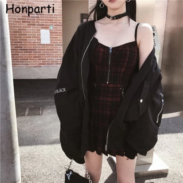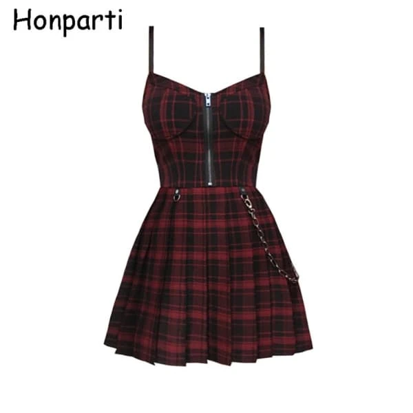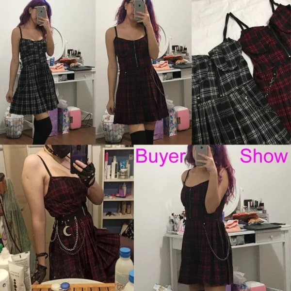 Our Gothic Plaid Dress combines classic plaid with a modern gothic twist. The wine red and black colors are perfect for fall, adding a unique touch to your wardrobe. Whether for a casual day out or a special event, this dress makes a statement.
