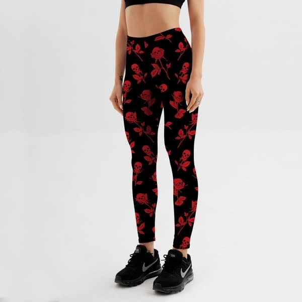 Do you love the cute skull prints but can’t find them in your size? Well, we’ve got you covered! Our red roses Leggings are the perfect way to wear your love for skulls on your legs. These are perfect for wearing to a Halloween party, with a t-shirt, or just lounging around.Â