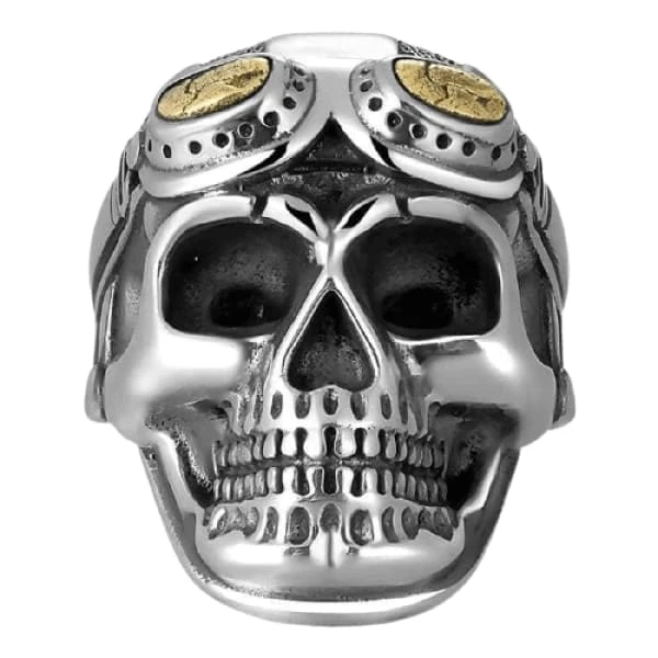 Our items are all hand-finished using unique aging techniques. As a result, there may be minor differences in each product. This classic Cool Biker’s Ring design features an extremely sculpted, laughing demonic skull with the biking goggles. Stainless steel is used to create a stunning and solid design.