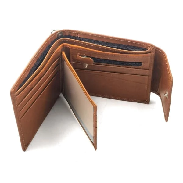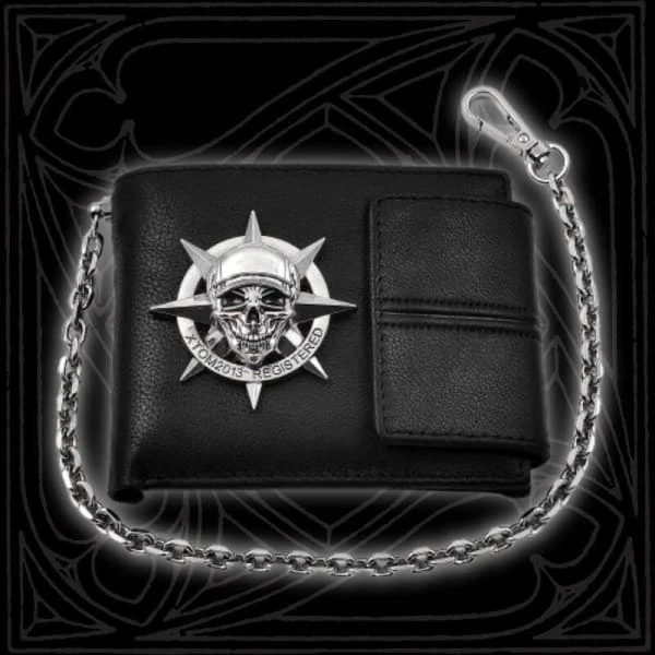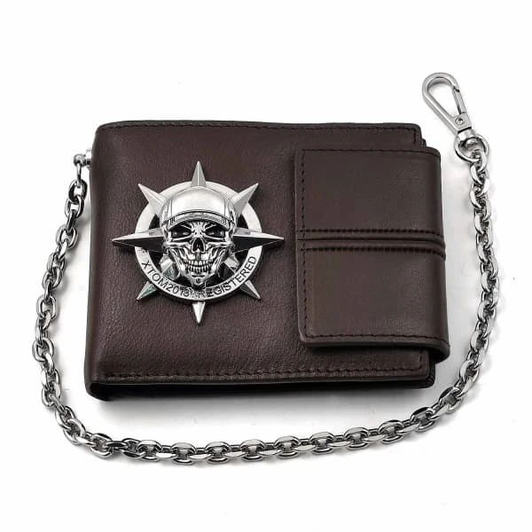 The Gothic skull wallet is made of 100% leather and includes a snap summary closure. The wallet is having a design of a skull and features a chain for easy access. It is made of leather and includes two slots for cards and a zip-around compartment for coins.