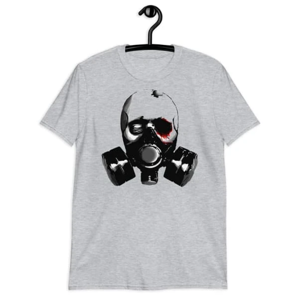 In this Zombie Gas Mask T-shirt print, the mask represents the toxicity of the world. Get this post-apocalyptic tee and become the filter of the toxins of words. Perfect present for the fall out fans.Â