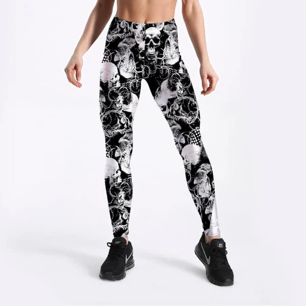 It’s time to go to the gym and hit the weights, but the thought of wearing a tight-fitting, sleeveless top and a skimpy, high-cut bottom has you feeling a little nervous. Fear not, there’s a way to get your workout on without exposing any skin! Our Skull exercising Leggings is the perfect solution.