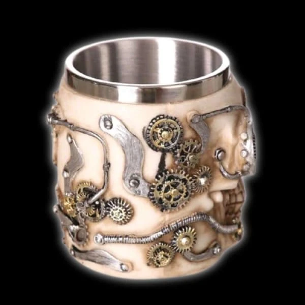 Step into the future by using this steampunk mug. It’s about a Steampunk Mug with the shape of a Human Skull. Very original as a mug, you could use it as decor for your desk and if you are bold enough, it’s epic drinkware too.Â