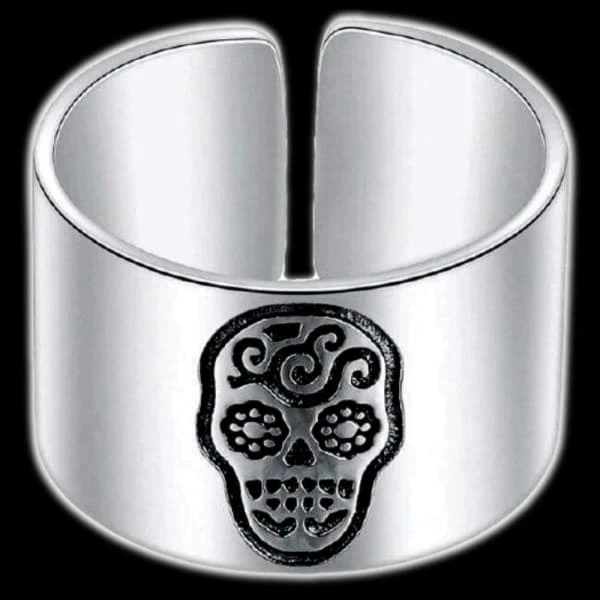 3D skull rings are common, with so many designs available these days. But, there is something different about the 2D carved simple rings. This Sugar Skull Ring Silver is one such pretty piece that does not have too much to show off. For those who want to make a quiet but lasting impact with their style sense, this ring is a dream come true! It goes with any dress and color. The smooth and reflective texture with even silver shade makes it a versatile accessory. Match it up with any outfit, and you will not regret your decision!