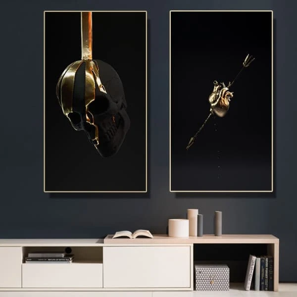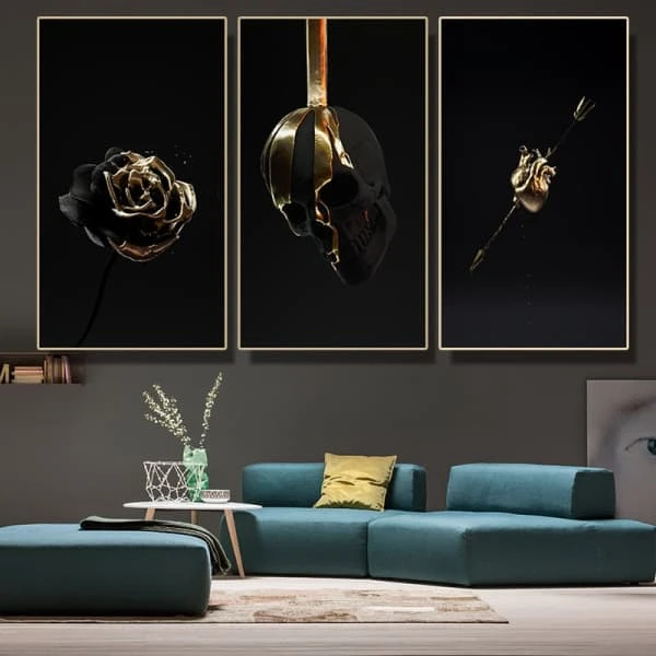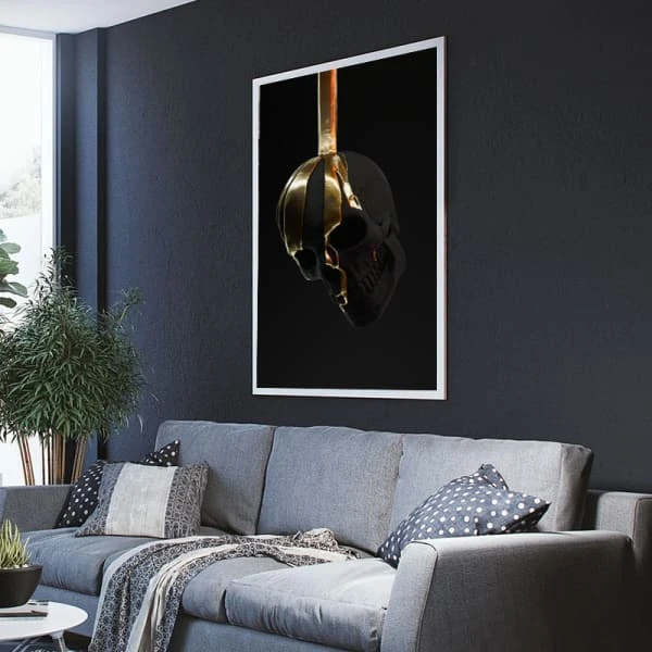 Golden skulls are a common symbol of death and rebirth. It is a common symbol in cultures such as Aztec, Celtic, and Egyptian. It is also often used in Mexican Day of the Dead celebrations. This printed black poster with golden skulls will make a great addition to any room. Get this Printed Black Poster with Golden Skull & Rose and enjoy. Â