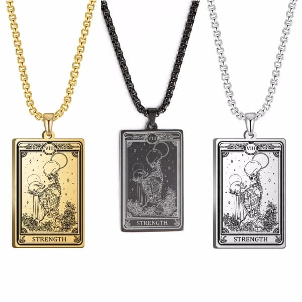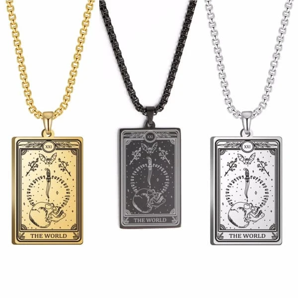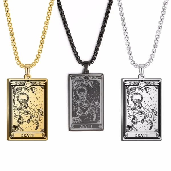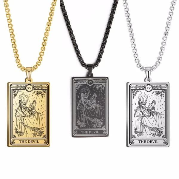 The Tarot Card Necklace with Skull Design is more than just jewelry; it’s a symbol of mystical power and personal style. Made from high-quality stainless steel, this pendant features an intricate tarot card design that will capture your heart. It’s perfect for anyone who loves tarot or unique fashion pieces. Available in steel, black, or gold, this unisex necklace complements any look.